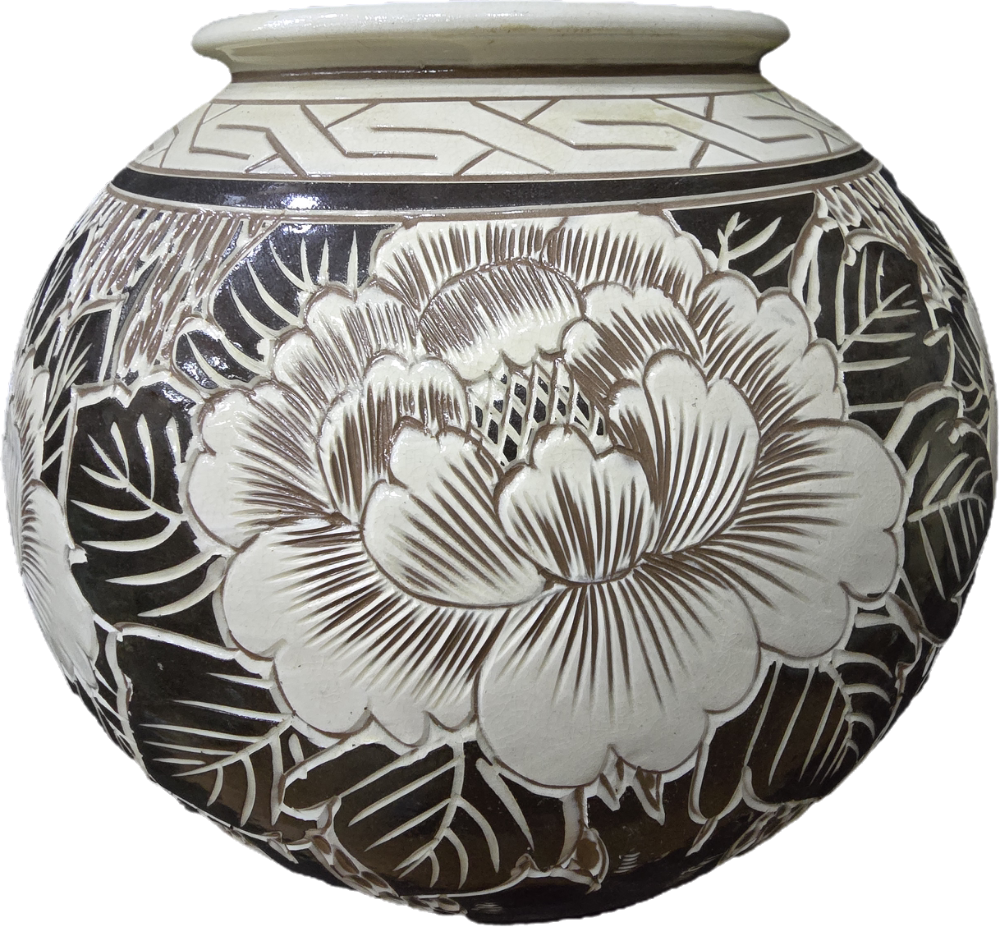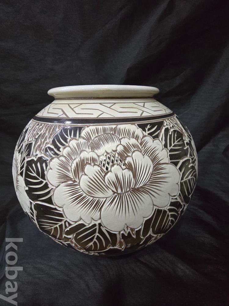 분청사기 도자기 / 모란문음각 분청 항아리 / 부곡도예 작품