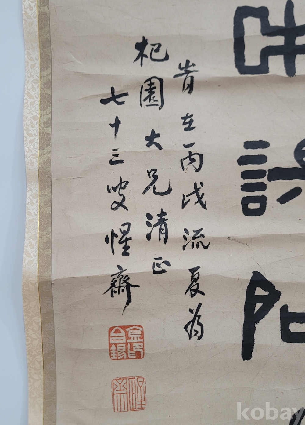 작품은 김태석 선생이 1946년 6월 73세 때, 기원(杞園) 대형을 위해 예서로 써준 글씨이다.