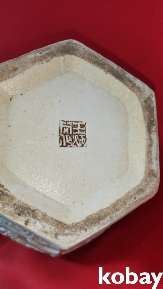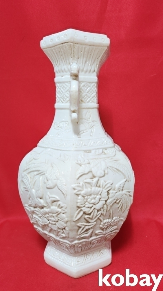 청대 황실 도예가 왕병영(王炳榮) 作 백자 6각 화조(花鳥)문양 양귀달린 병입니다,