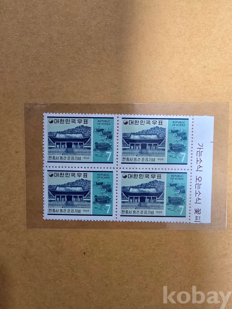 미사용 명판우표 69'4.28현충사 중건준공기념