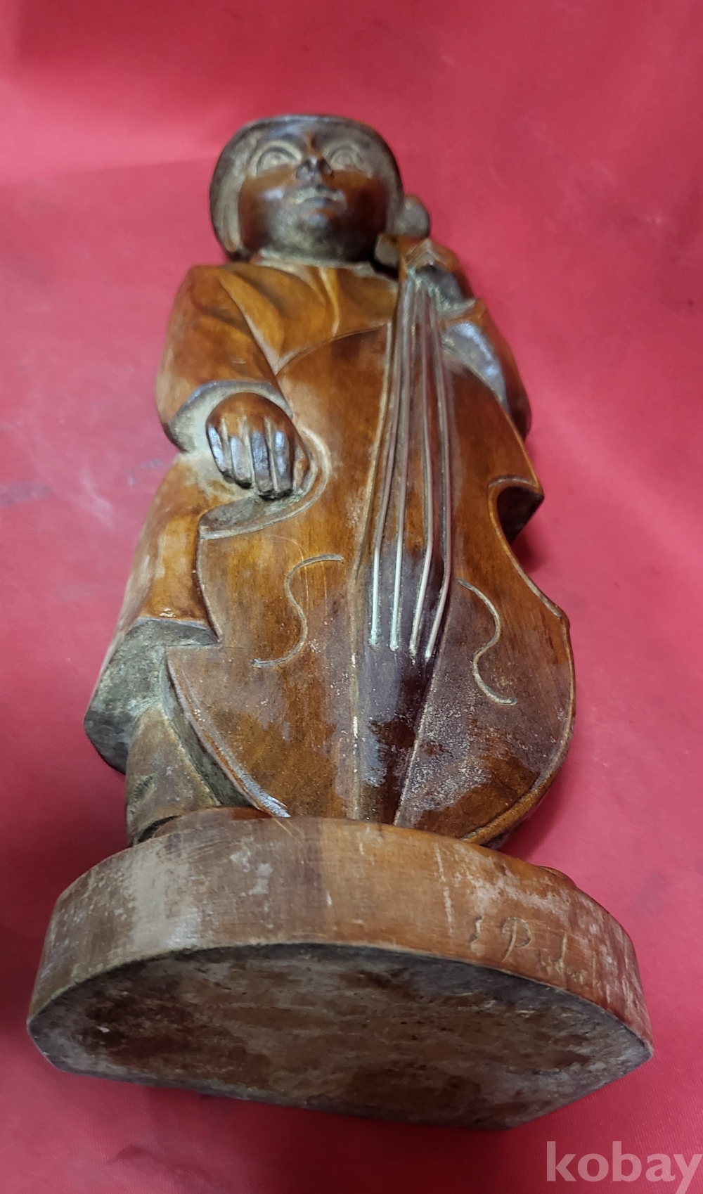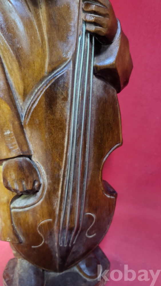 고급 나무로 만든 첼로와 연주자이며 첼로의 4개의 줄이 황동으로 움직입니다,