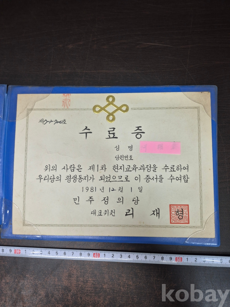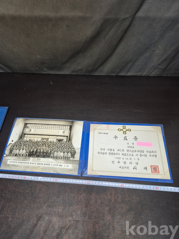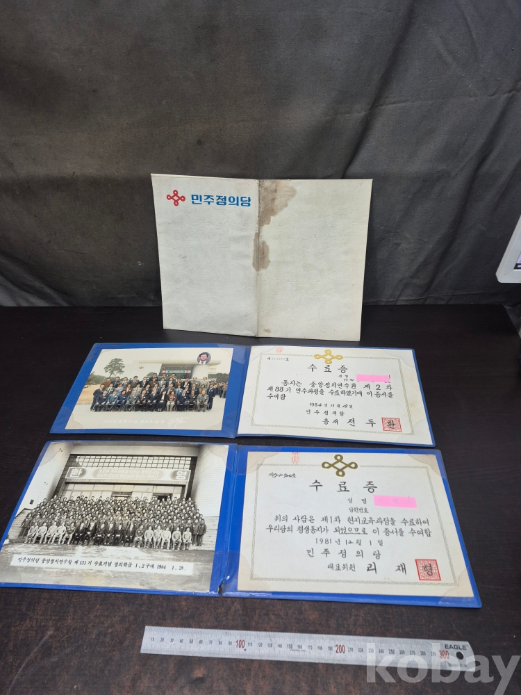 1981년 1984년 민주정의 중앙 정치 연수원 수료증 2점 민주정의당 총재 전두환 27*20*1