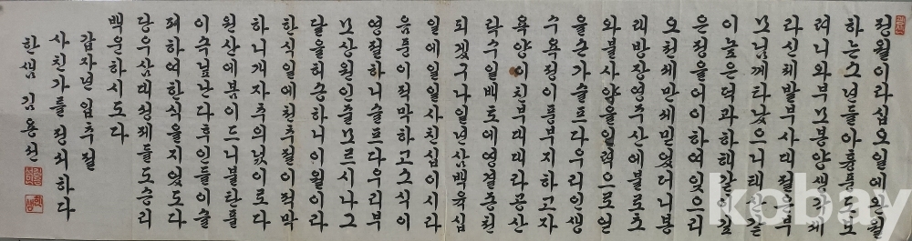 서예가 한샘 김용선 作 한글 서예품입니다,