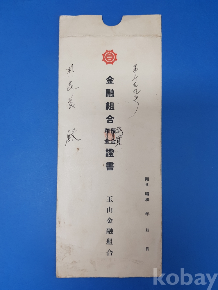 **** 일제시 일제시 소화년간 玉山금융조합 금융조합출자증서 봉투