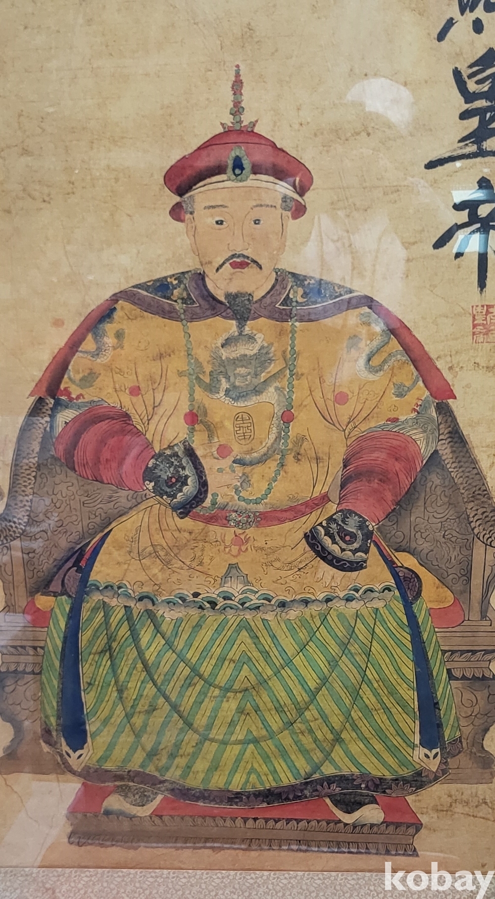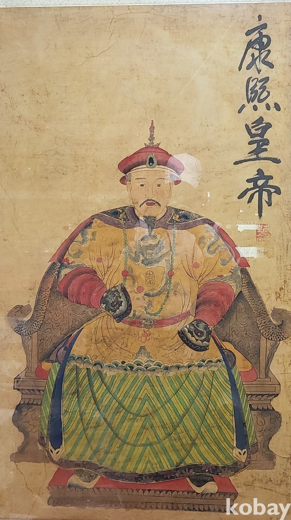 청나라 강희황제(康熙帝帝) 어진(御眞) 으로 종이에 채색되었읍니다,