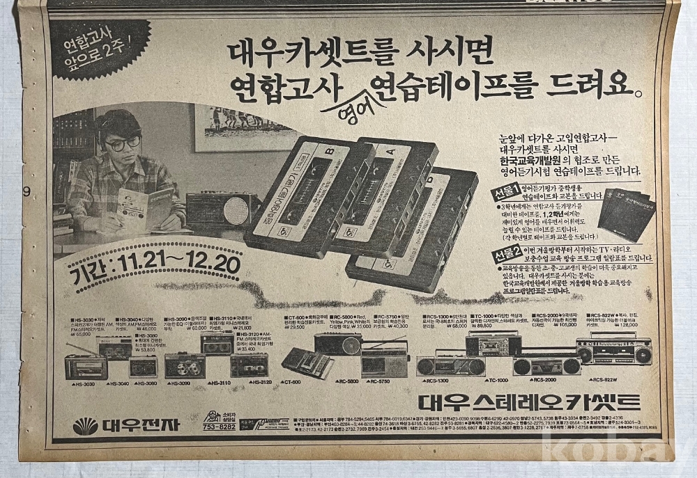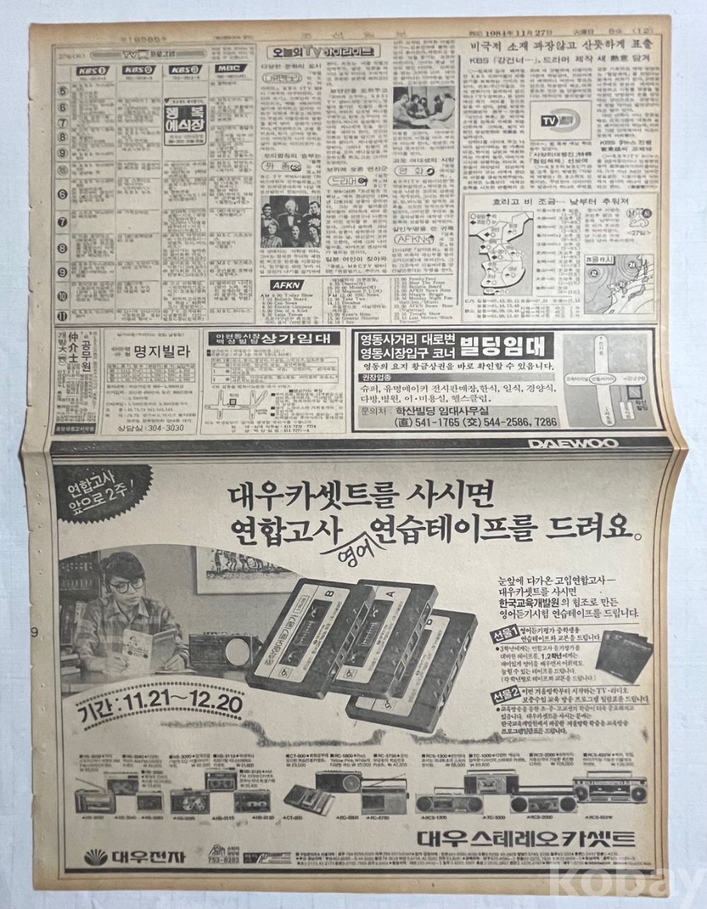 대우 카세트 광고가 실린 1984년 조선일보 낱장입니다.