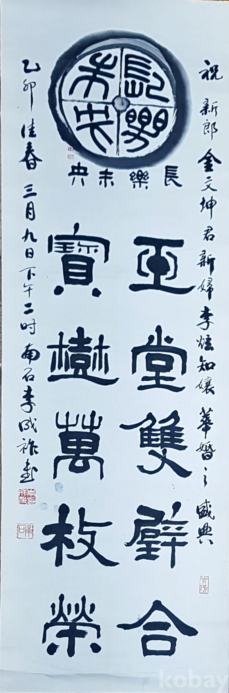 | 물품 크기 | 종이 크기; 30×105cm 화선지에 수묵 글씨 |