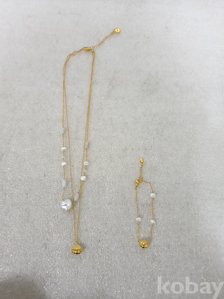 {천원경매} Y-11.2395 금색조개모형 펜던트 목걸이+ 팔찌