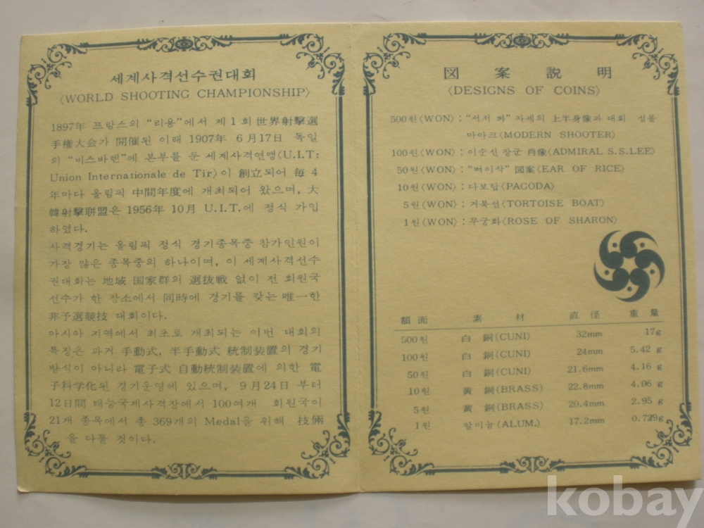 42회 세계사격선수권대회 - 대한민국 서울 (도안 설명 등, 1978년)