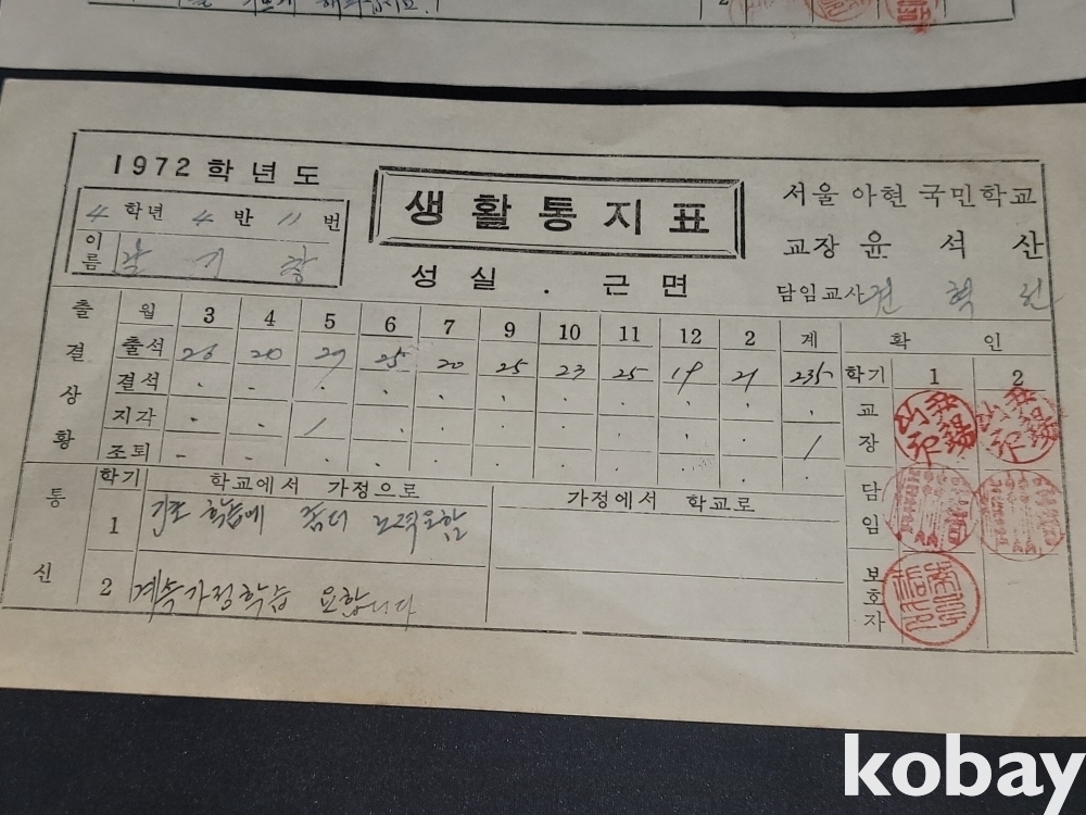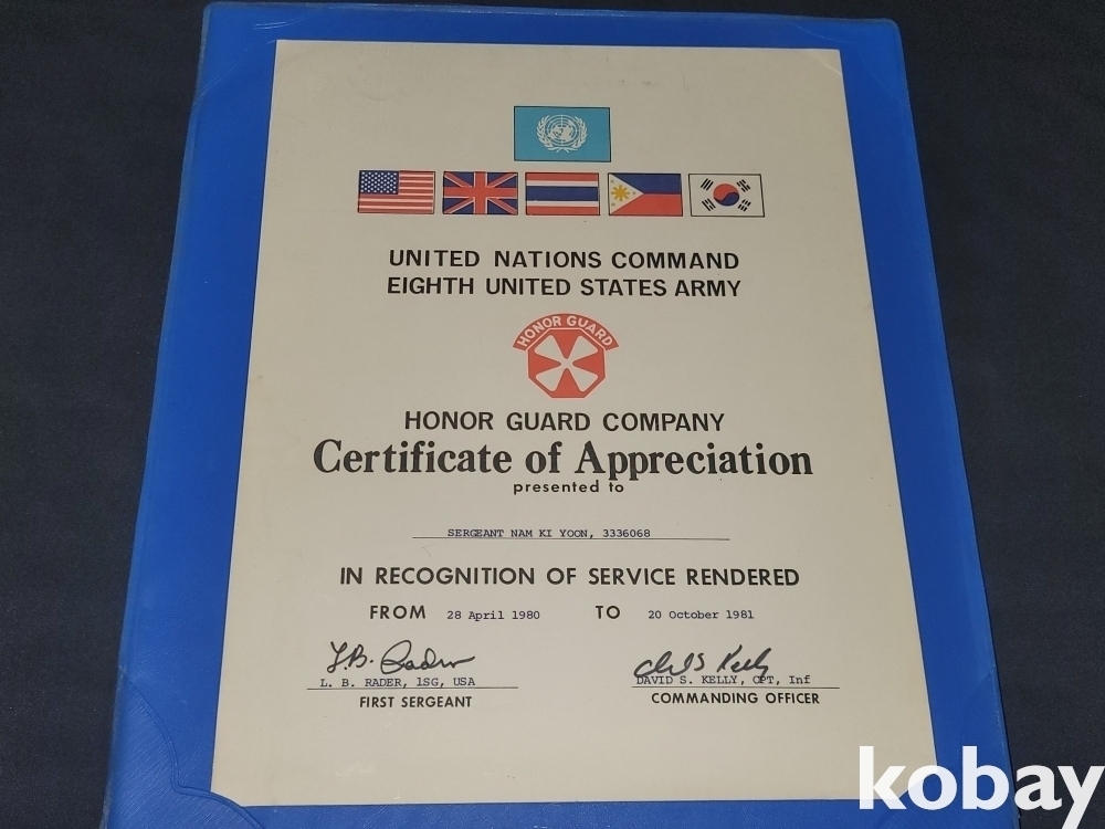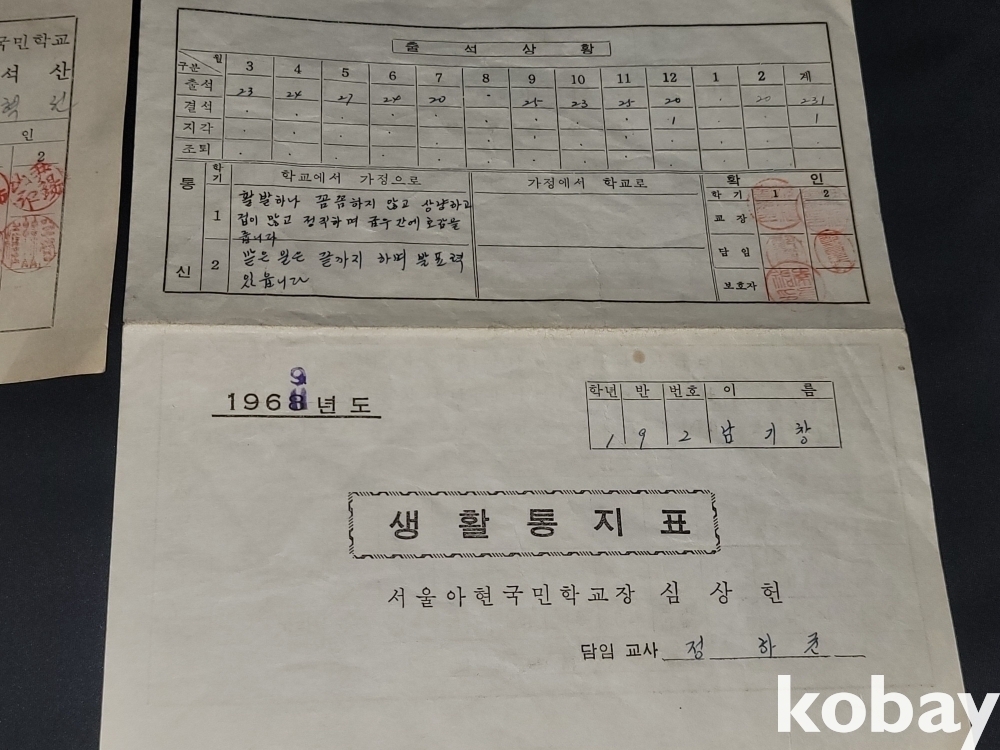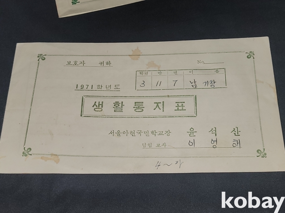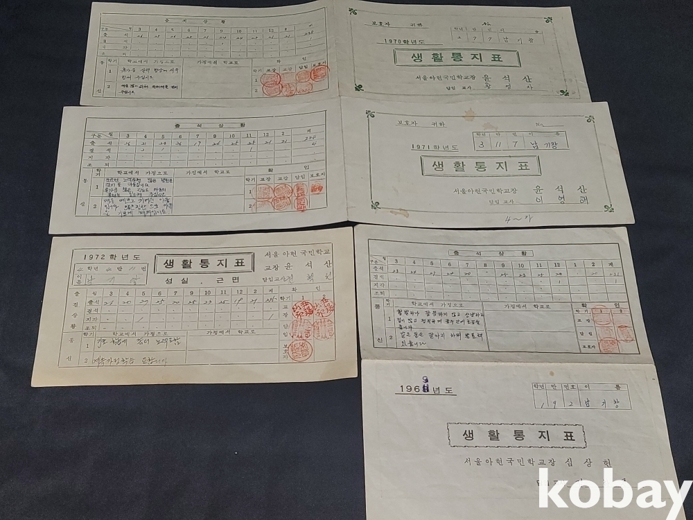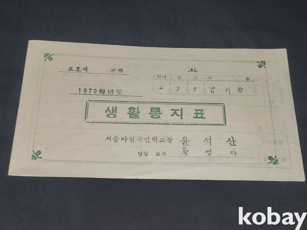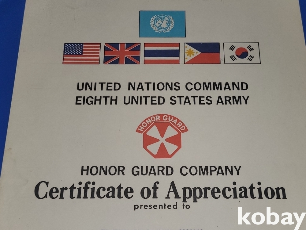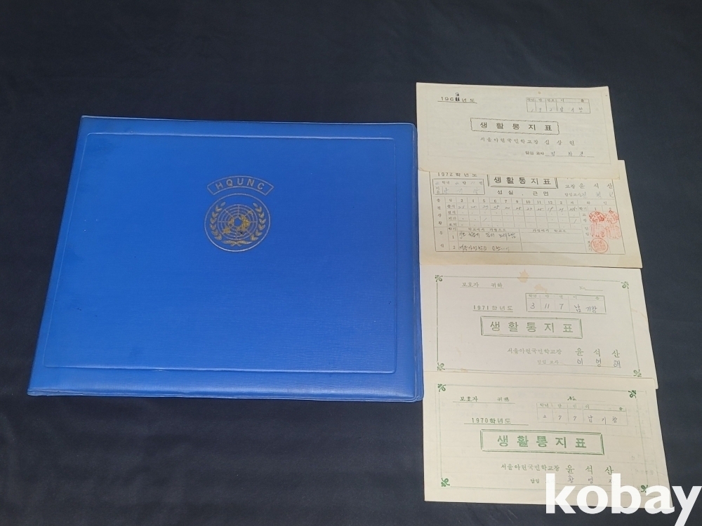 빈티지 희귀한 세월 감이 느껴지는 1980년 유엔, 미8군 사령부 명예 경호 감사장, 69년~72년 생활 통지표 4장 일괄입니다.