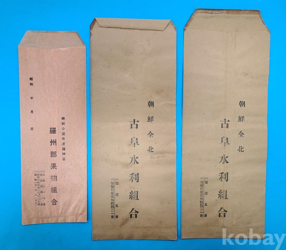 일제강점기 전북 古阜水利組合,羅州邑 羅州郡果物組合에서 사용한 봉투
