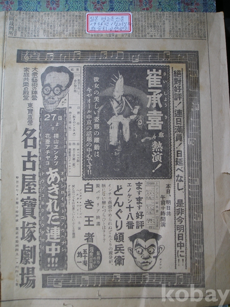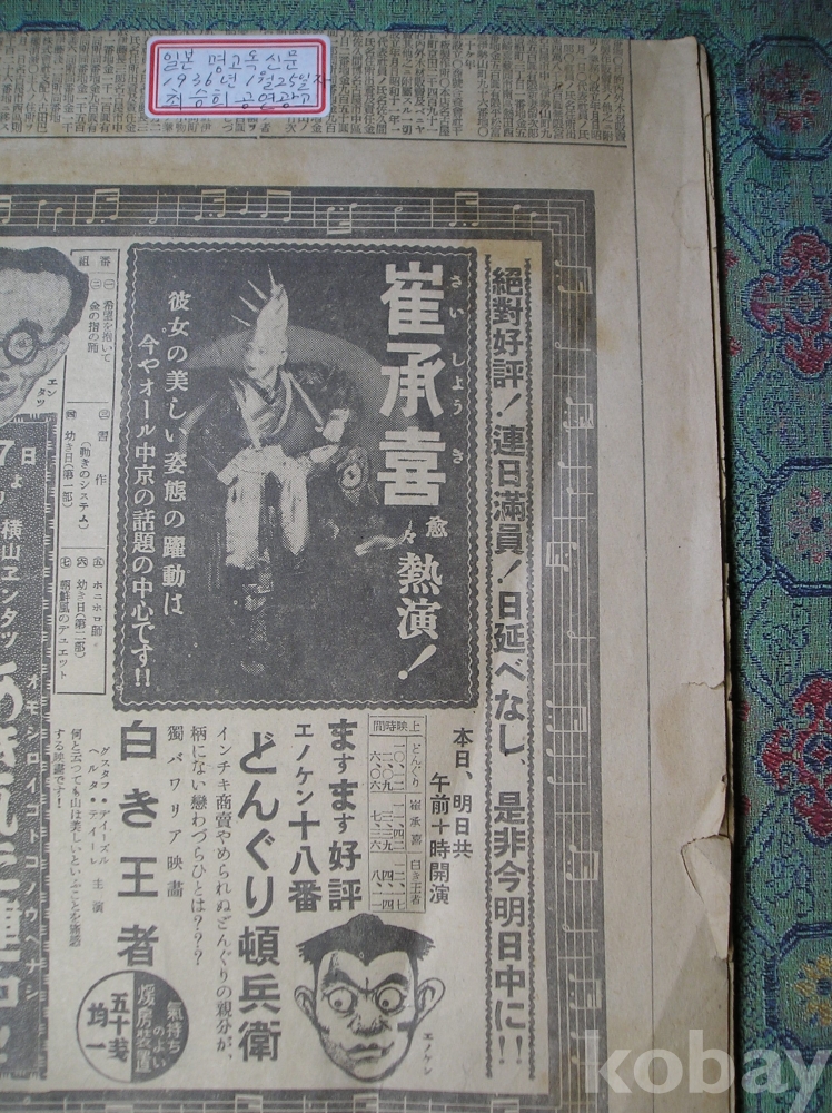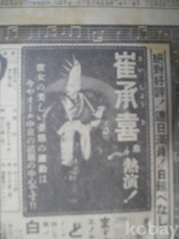 일제강점기 당시 유명 무용가 최승희의 활약상을 알 수 있는 자료.
