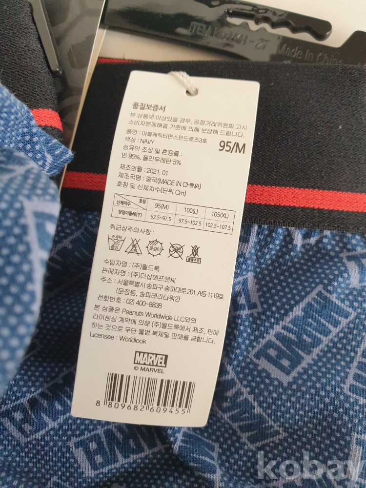 [천원경매] 11-376 마블 남성용 드로우즈 팬티(사이즈 95, 2개)