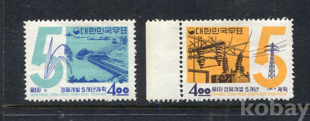 - [우표] 1962년 미사용 1차 경제개발 1집 2종 (MNH : Mint Not Hinged) : 이미지 참조하세요