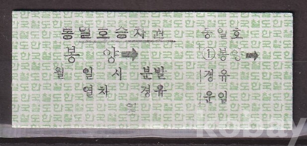 - 미사용 통일호 승차권 " 봉양역 발매 "