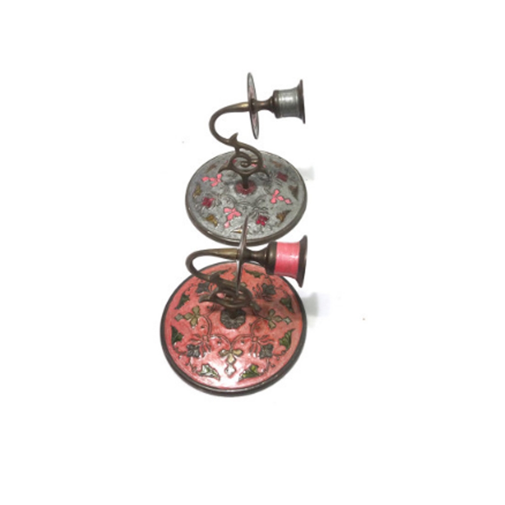 황동으로 만들어졌으며 칠보가 씌워져있는 촛대2점 입니다.