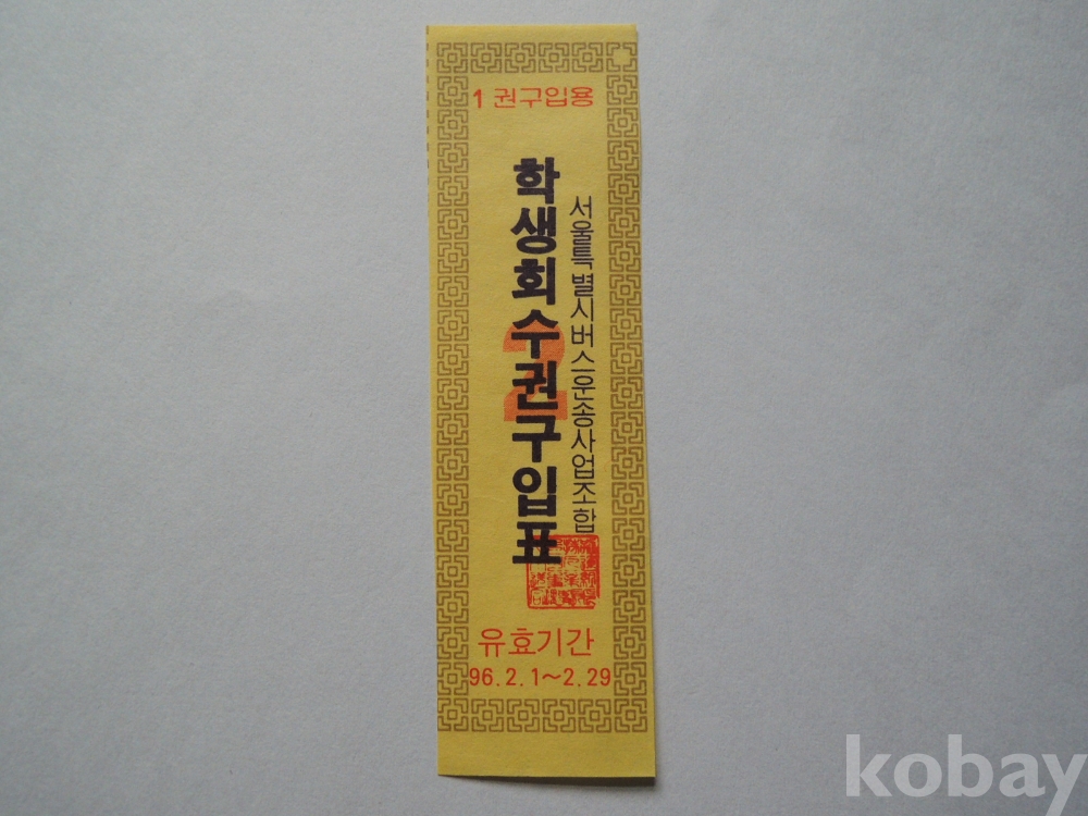 서울시내버스 학생회수권 구입표 (96.2.1~29)