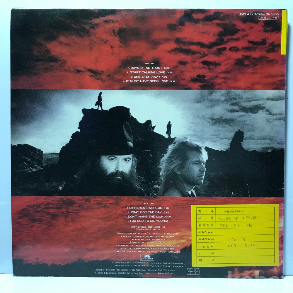 LP 84,010-28 MAGNUM - WINGS OF HEAVEN . 자켓 EX 알판 EX+ 89 년제작 국내반