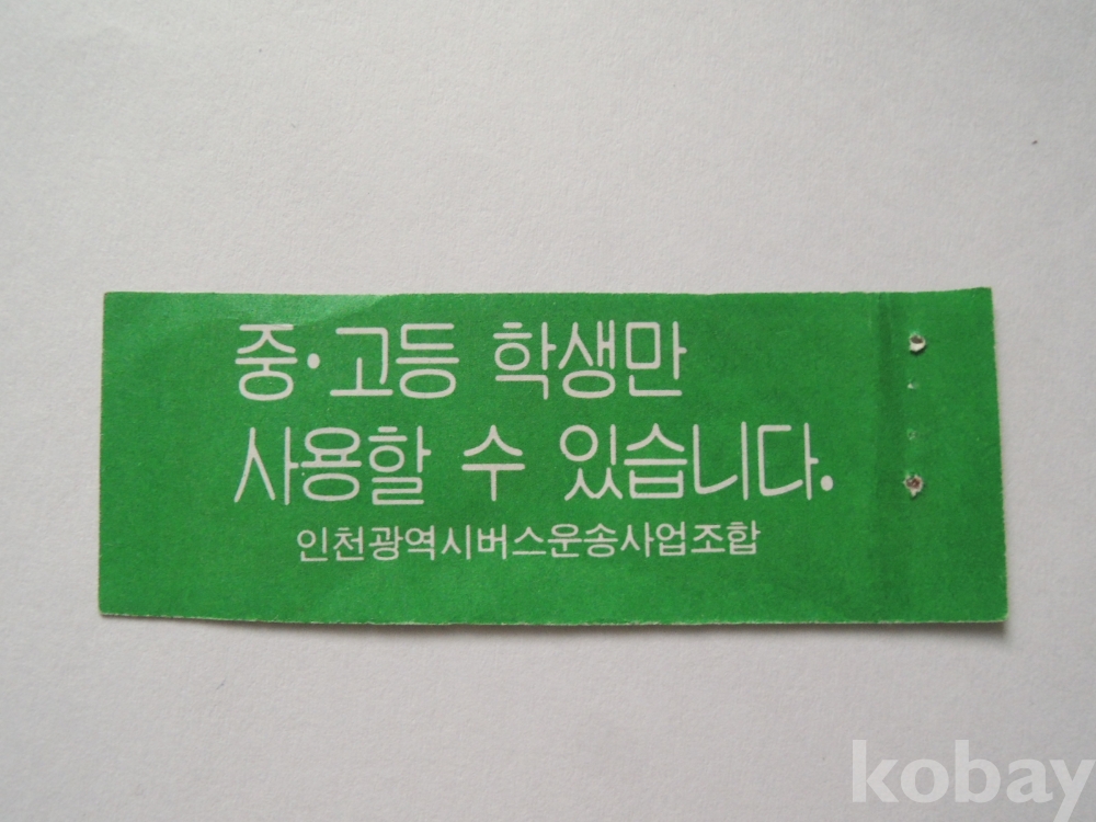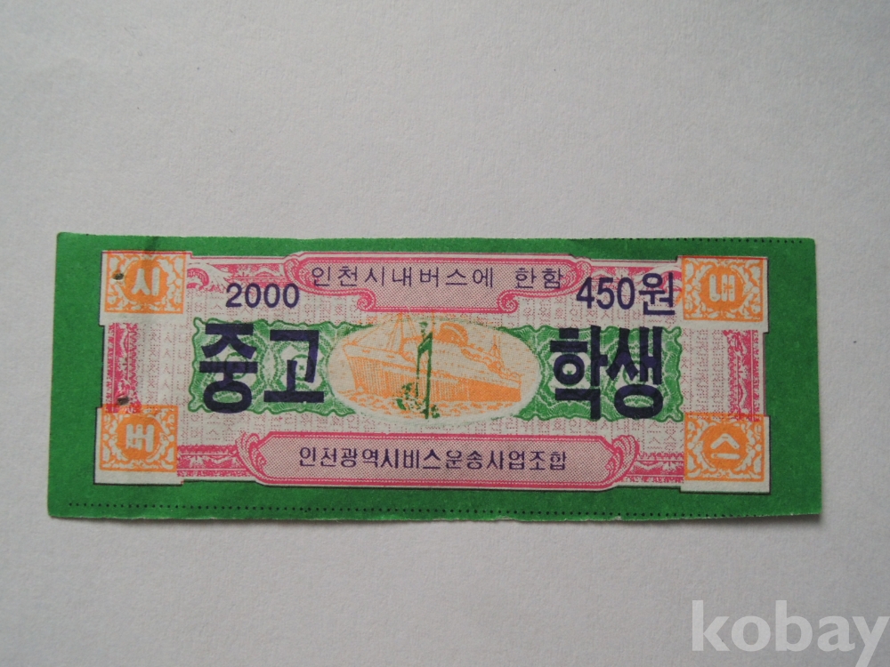 인천시내버스 중고생 회수권 (450원)