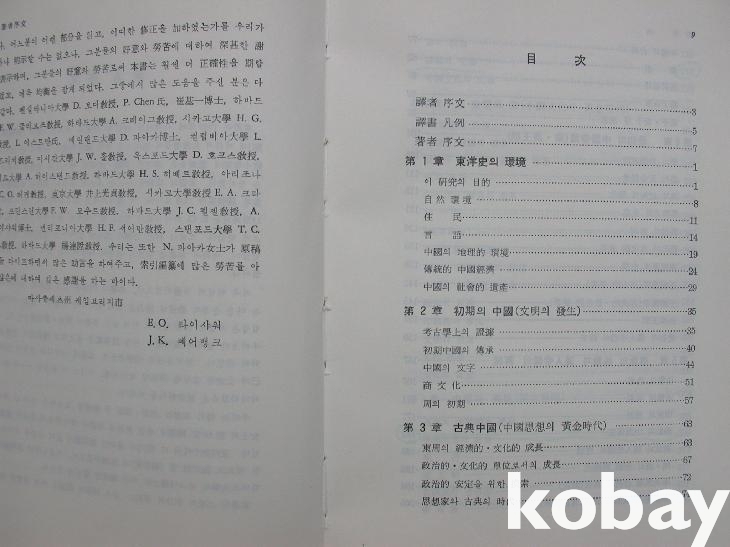 먼저 <역자서문>에서 동양사에 관한 적절한 개설서가 필요하던 차에 하버드대 교수들인 이들의 책이 "사실들을 인과관계 속에서 파악하고 현대적 해석을 가하여 보려고 시도한 점에서" 다른 책을 능가하며 최근 성과도 적용한 장점을 들었다. 아울러 본서를 번역하게 된 이유 중에는 "우리가 절실히 필요로 하면서도 읽을 만한 서적을 갖지 못하고 있는 일본의 역사와 문화가 여기에서 제1급의 전문가에 의하여 상세히 다루어져 있다는 점"이라고 하였다. 물론 "동아의 위대한 전통"이라는 원제에 걸맞도록 한국 부분이 미흡하고 소략하여 흡당하지 않지만 원저대로 충실히 옮겼다는 말도 하였다. 이어 <역서범례>가 있고 <저자 서문>이 있다. 저자는 1939-47년 하버드대에서의 강좌내용을 기초로 책을 썼다며 각자의 분담을 밝혔고, 소개서가 없던 한국사에 대해서는 "기전외(旗田巍) 저 <조선사>에 의거하였으며, 서울대학교 이병도 박사와 하버드대학의 와그너 박사의 매우 세밀한 수정을 받았다"고 밝혀 놓았다.