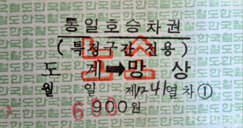 통일호 승차권 특정구간 도계-망상 노소입니다.