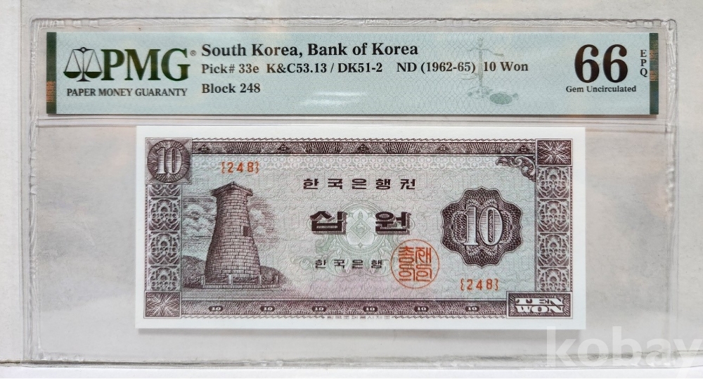 -대한민국 첨성대 십원 PMG 66 고등급이며 그레이딩 입니다.