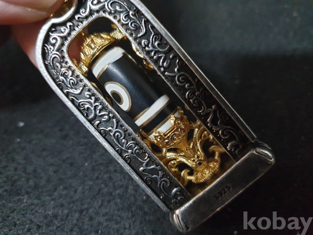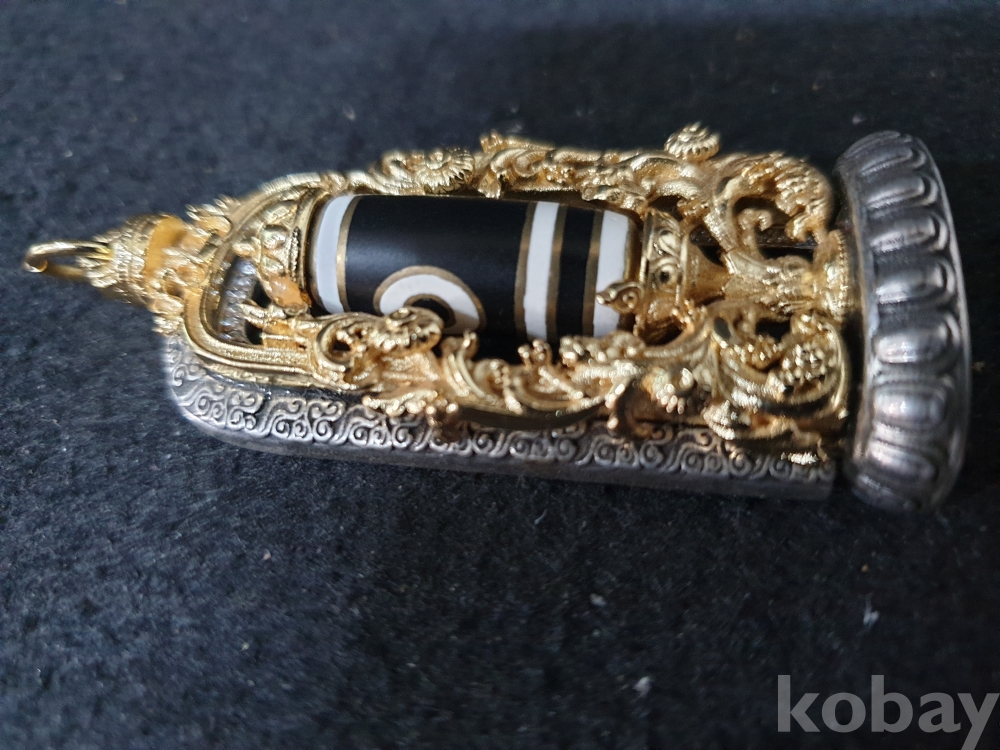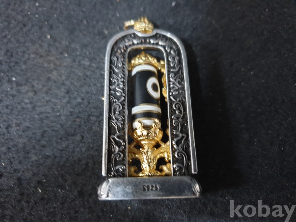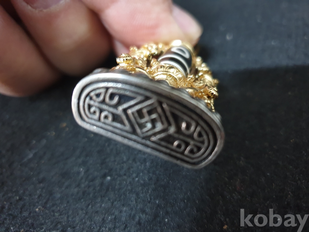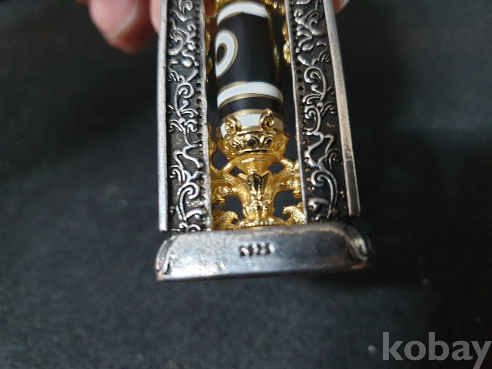 사이즈:높이:6센치. 무게:46그람. 설명:이쁜 기형의 2안천주 장식의 티벳 목걸이 입니다.천주를 돌릴수 있게 만들어졌습니다.천주에도 은으로 장식을 해놓은 아주 귀한 목걸이입니다.뒷면은 925란 글씨가 세겨져있습니다.최대의 사진으로 본 기물의 이쁜 모습 보여드리겠습니다.상태 양호합니다.사진 참고 바랍니다.