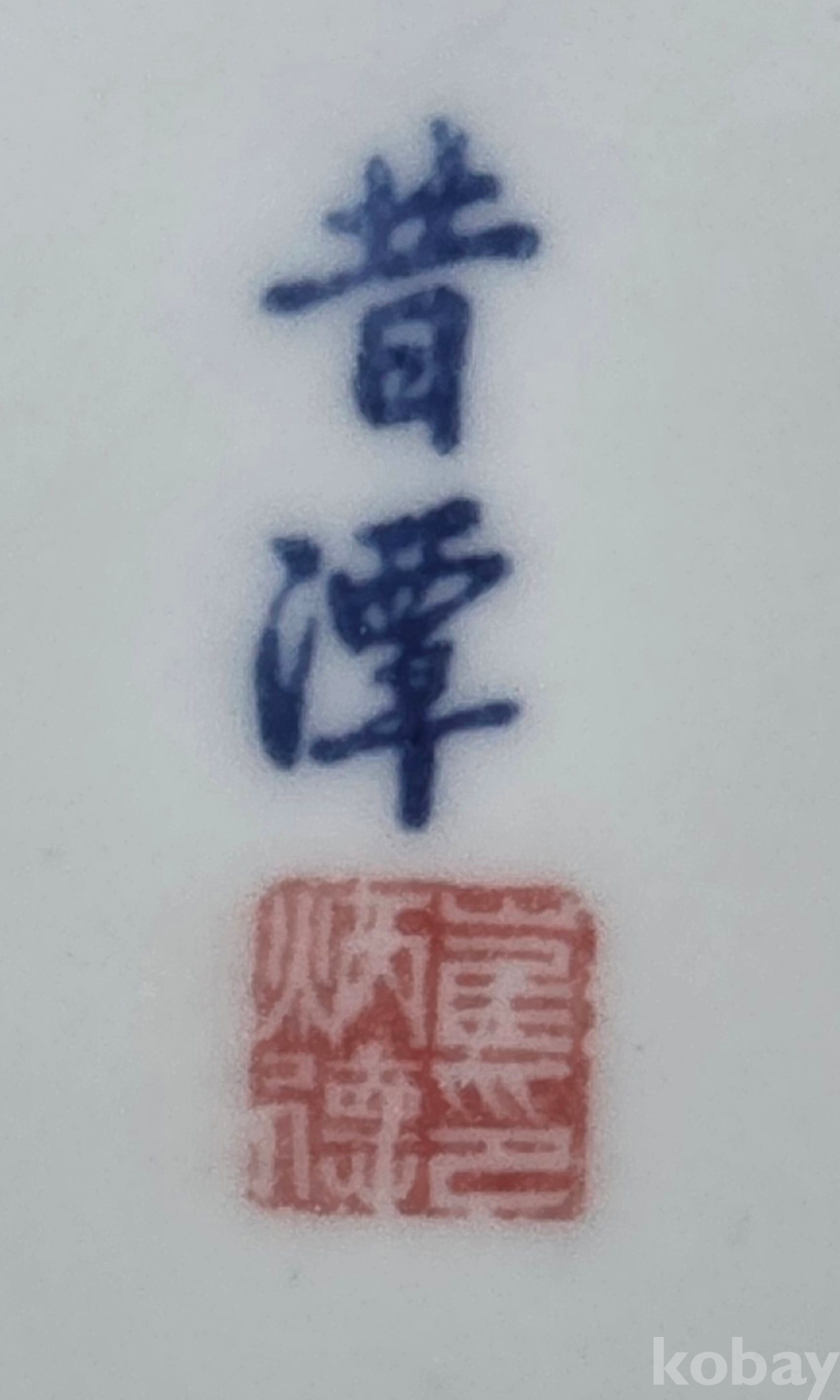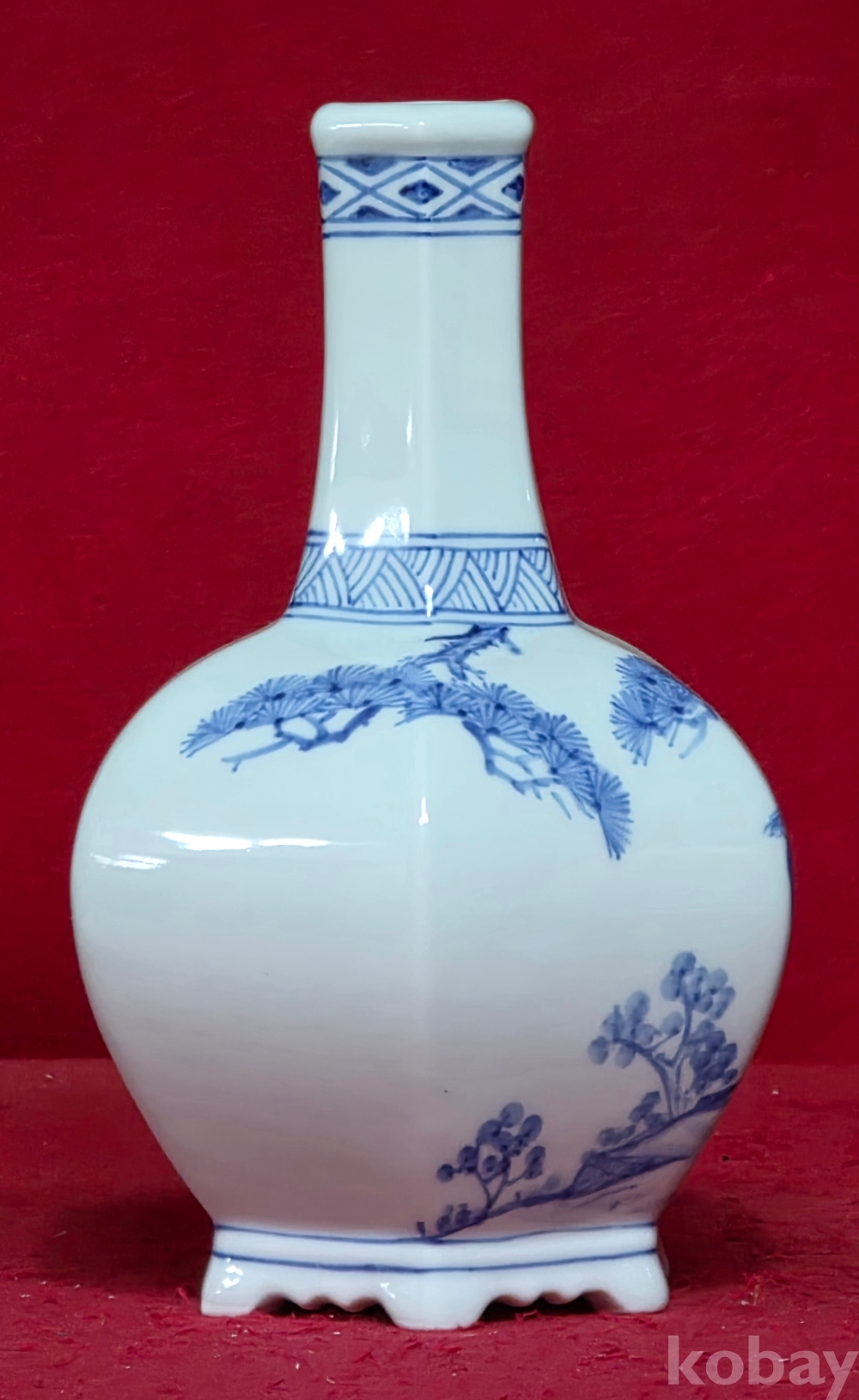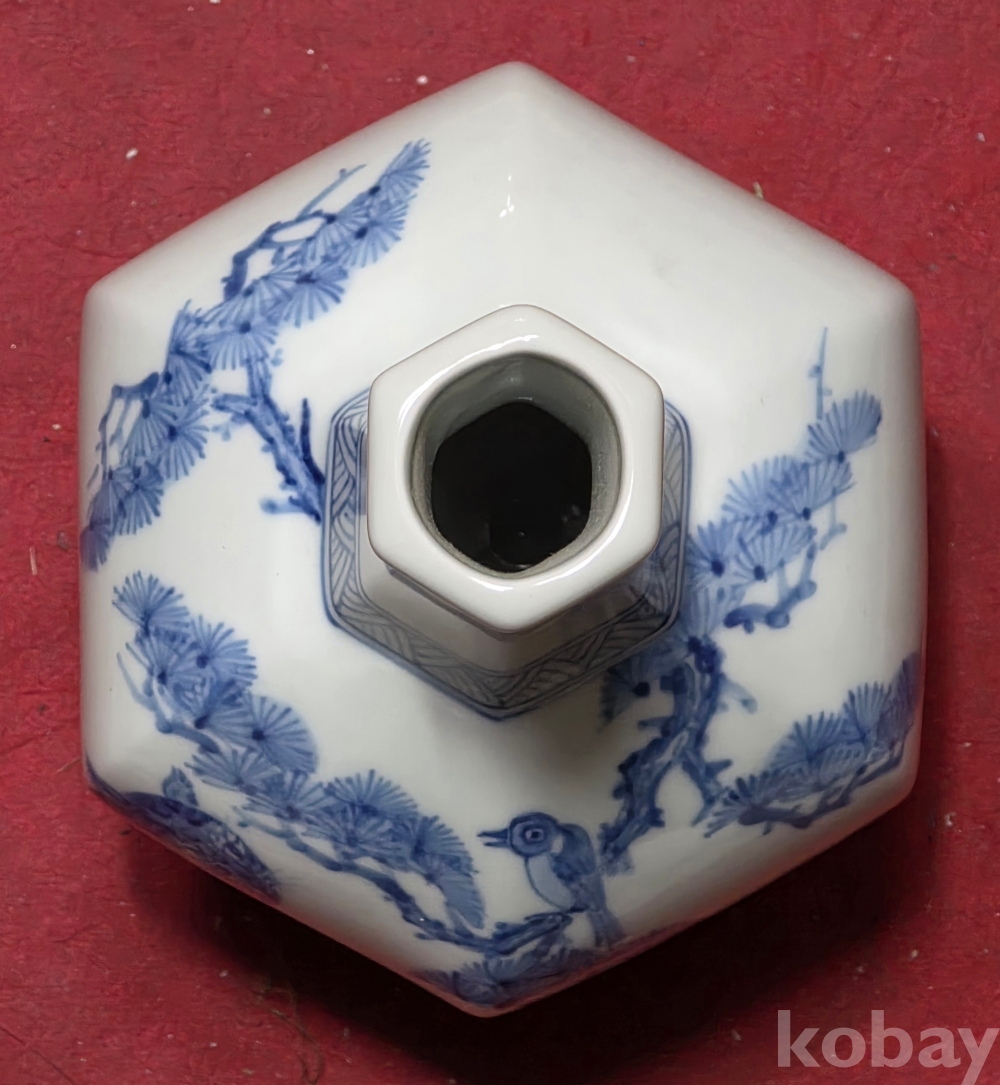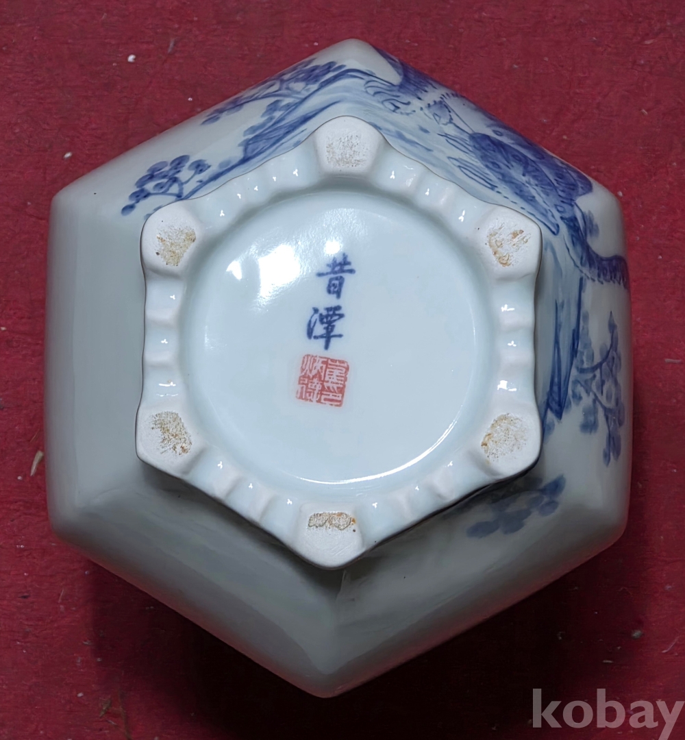 여주 도예명장 석담 최병덕 명장의 청화백자 까치 호랑이 6각 주병 미사용 입니다