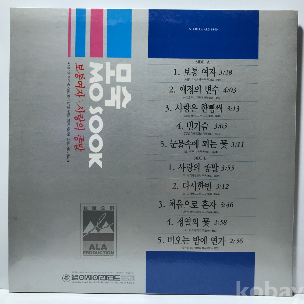 LP 83,780-53 모숙 - 보통 여자/ 사랑의 종말 . 자켓 EX+ 알판 NM 90 년제작 국내반