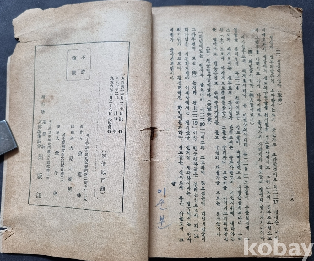 세월의 흔적 (뒤 표지 훼손, 빛바램)
