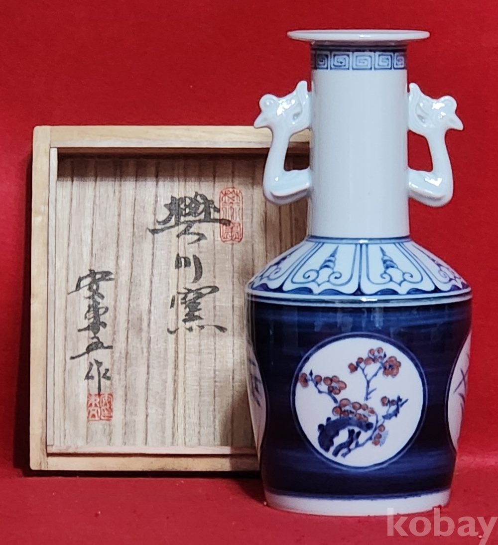 인간문화재 호산 안동오 선생님의 청화백자 사군자 진사채 양이오 입니다