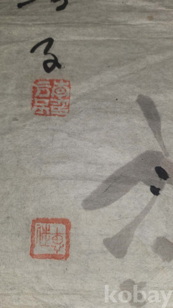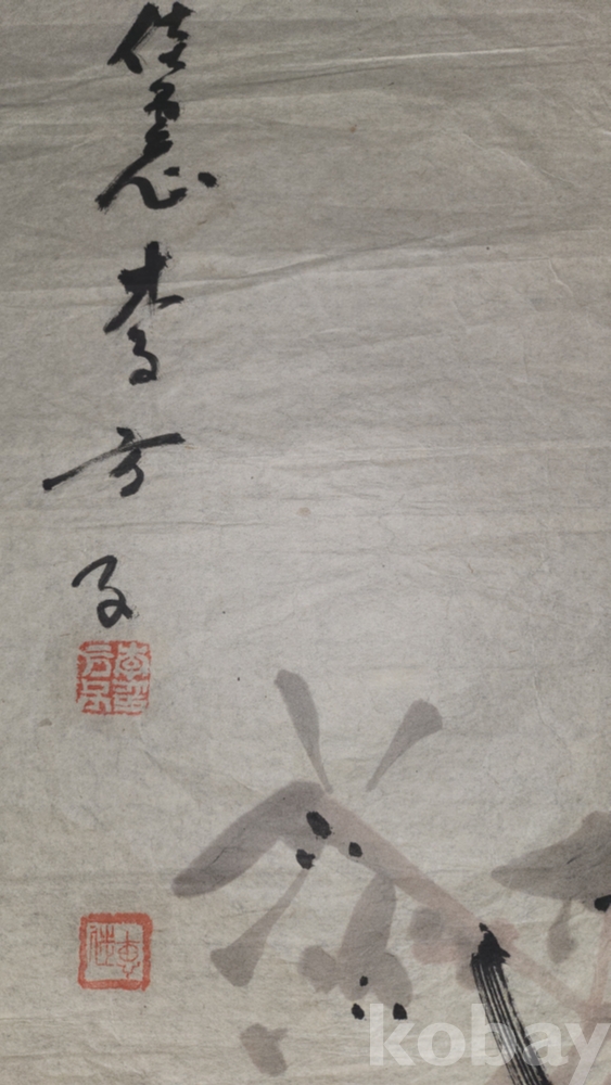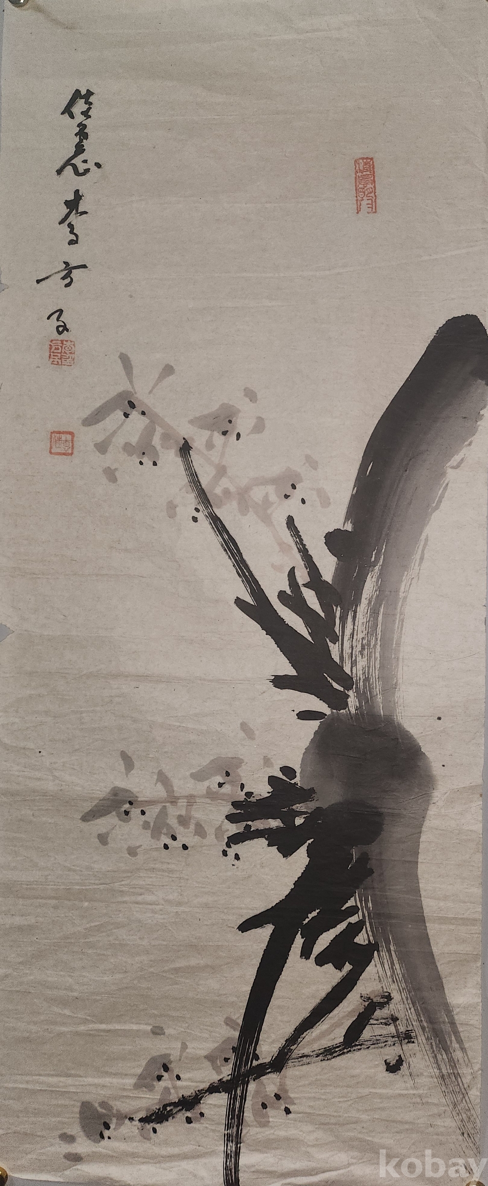 가혜 이방자 낙관이 보이는 수묵 괴석에 난초 그림입니다,