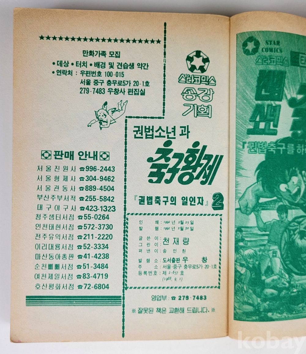 물 품 명 | [스타프로덕숀코믹스] 천재량 / 권법소년 축구황제(2) : 권법축구의 일인자 / 1992년 초판 / 도서출판 우창 |
