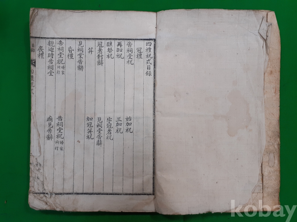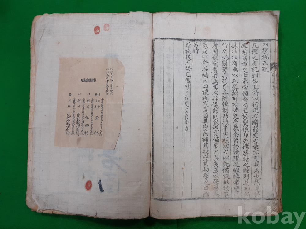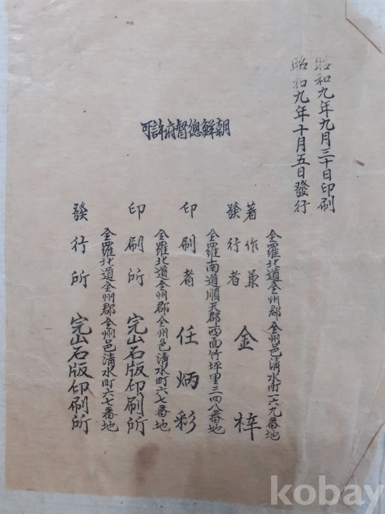 책 표지 헤짐 등 세월의 흔적 있으며, 책 첫페이지 에서 9장 정도 좌측 하단 찢긴 부분 있습니다