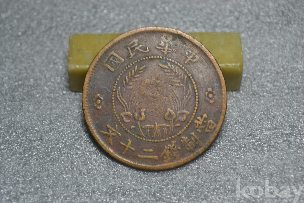 " 귀한종류 " ~ 오래되고 사용감이 많은 낡은 보품~ 보품이하급의 대형지름 32 mm 진품 중국동폐 중화민국 개국기념폐 쌍기십문 20캐쉬 ".. 진품 중국동폐 민국시대..