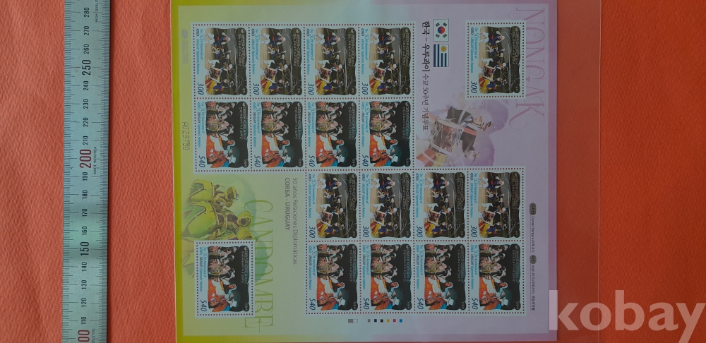 2014 한국 - 우루과이 수교 50주년 540원, 300원 18매 전지 입니다.