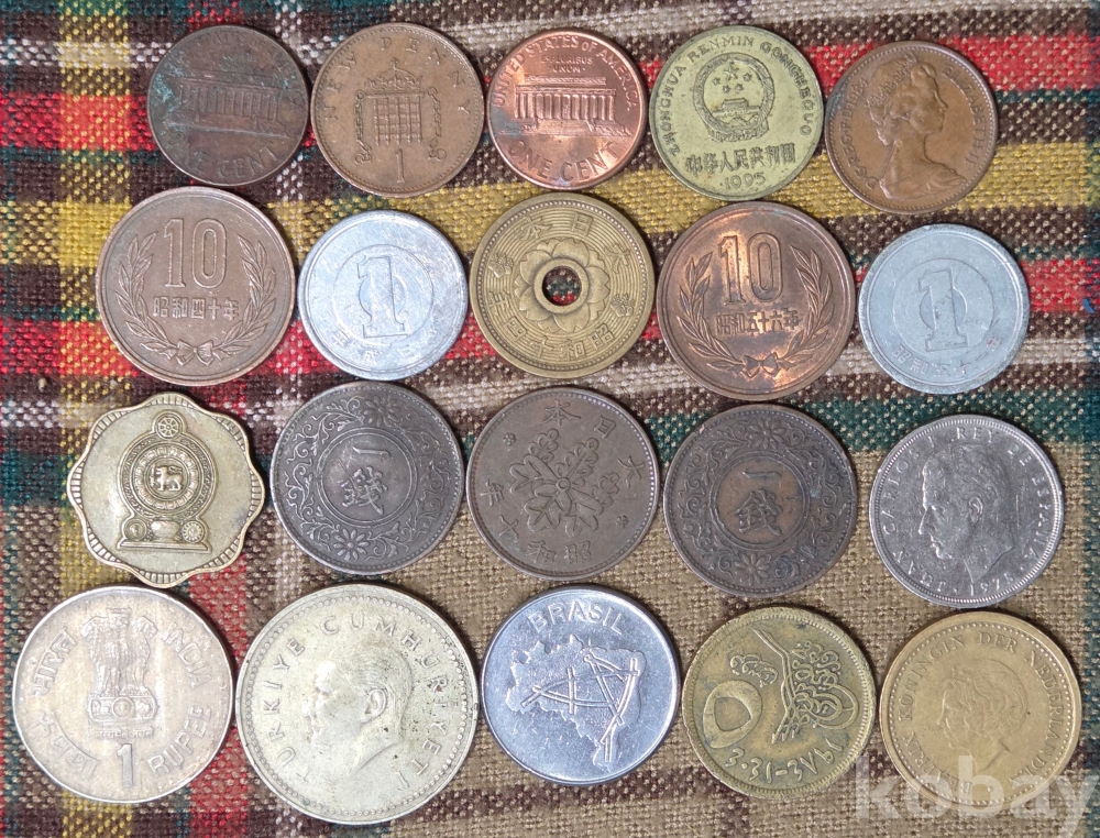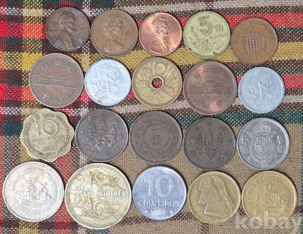 20점의 외국 동전들입니다