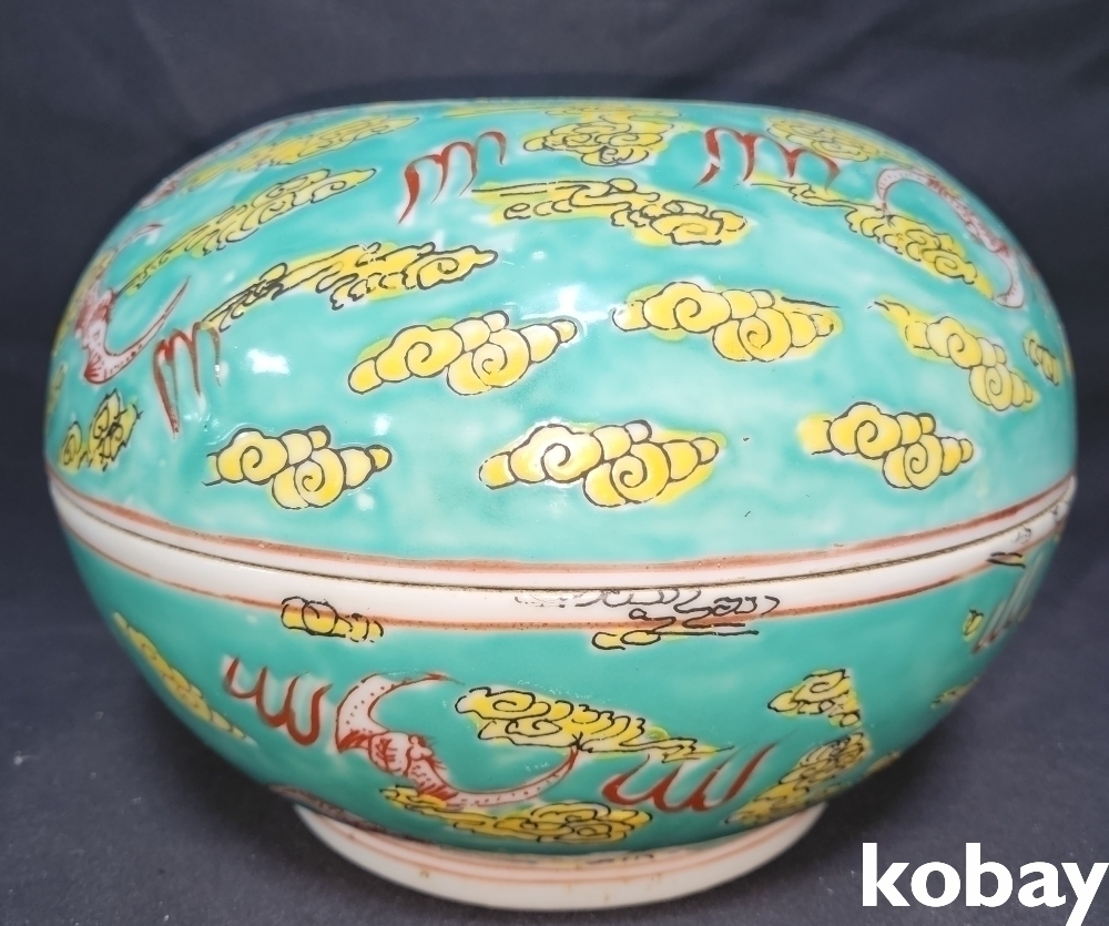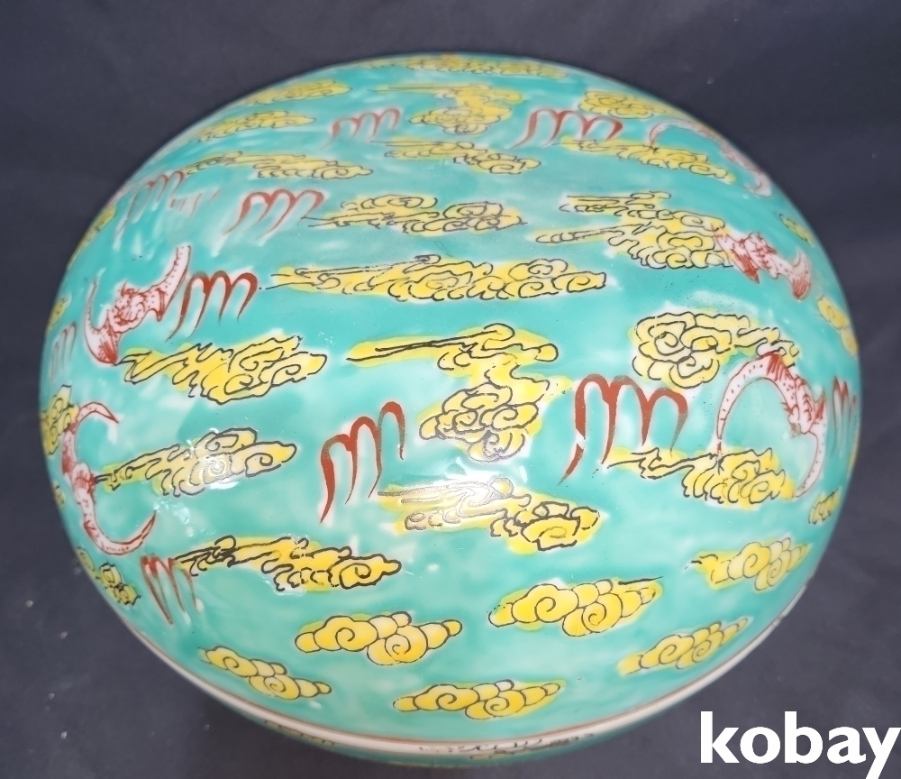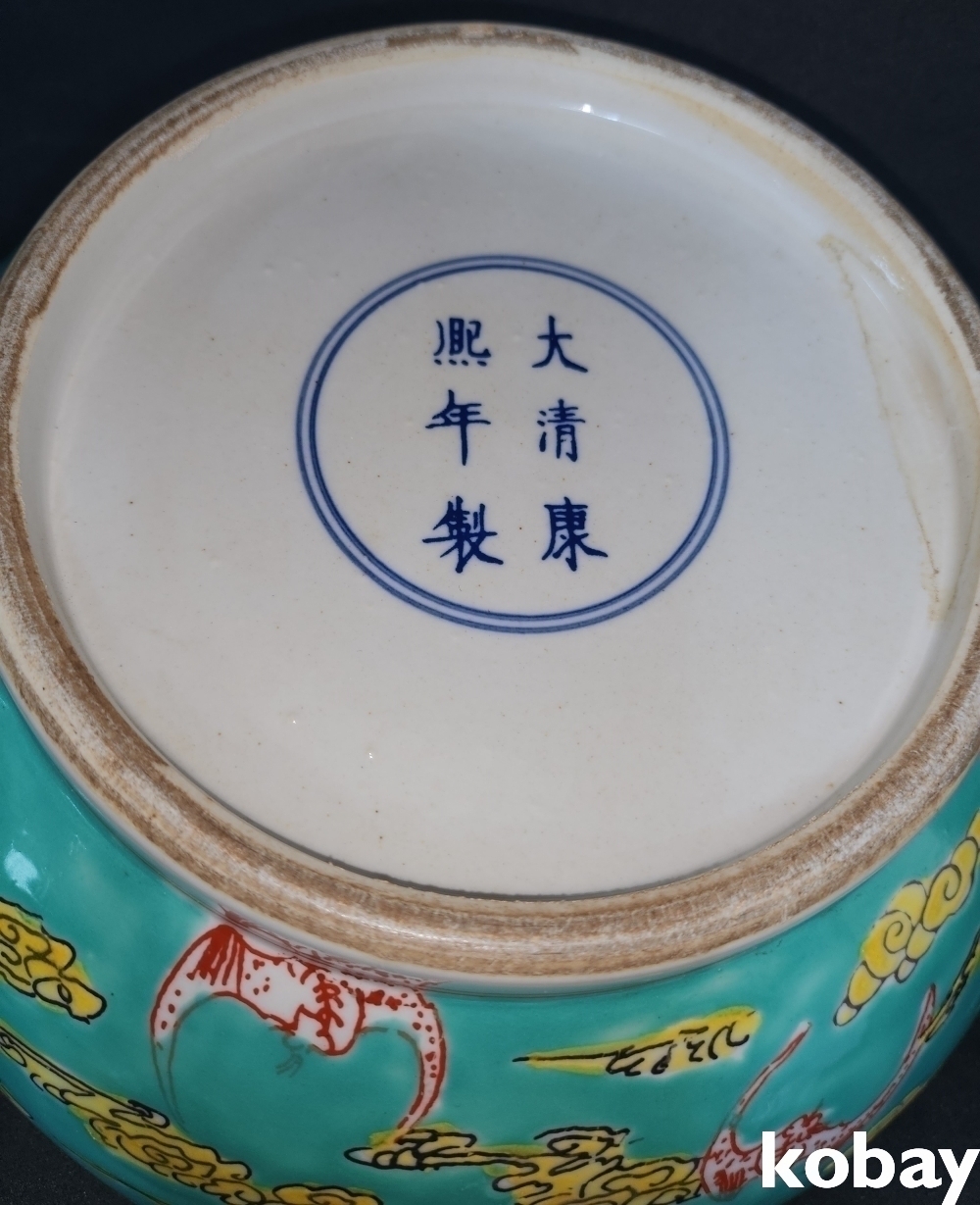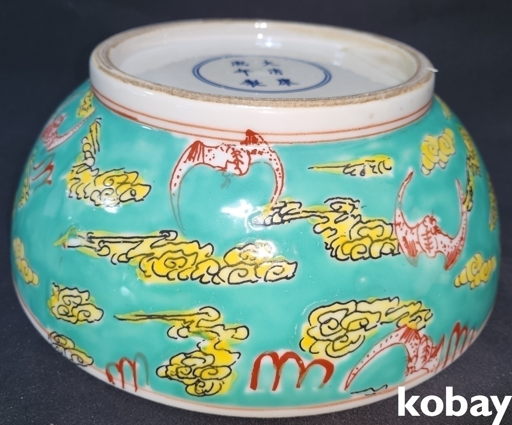 대청강희연제 분채 붉은 박쥐와 항색 구름문양 합니다,상태는 좋습니다,