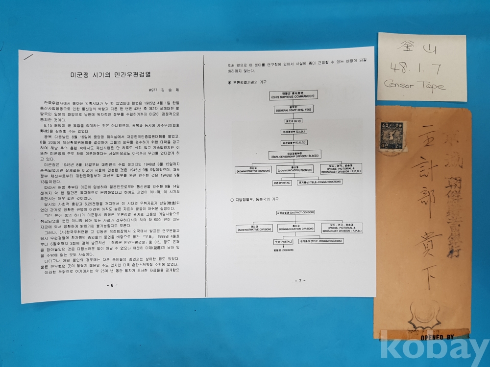 **** 미군정청원화보통 2원 지도 단첩 실체/부산.48.1.7/미군정청 검열인.검열테이프/C.C.D.J-3032(?)