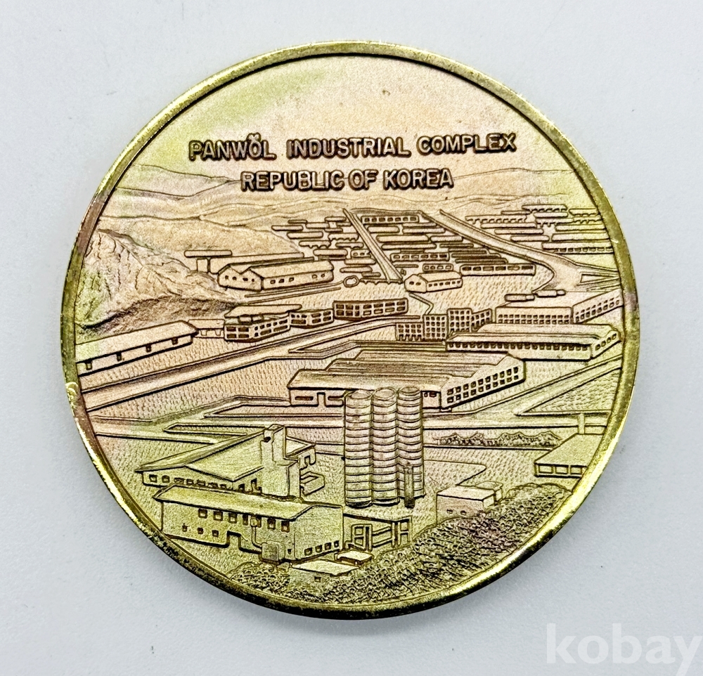 상품 설명 | 반월공업공단의 기념 메달 1점이다. 메달의 뒷면에는 반월공단 전경의 모습이 새겨져 있다. | ||