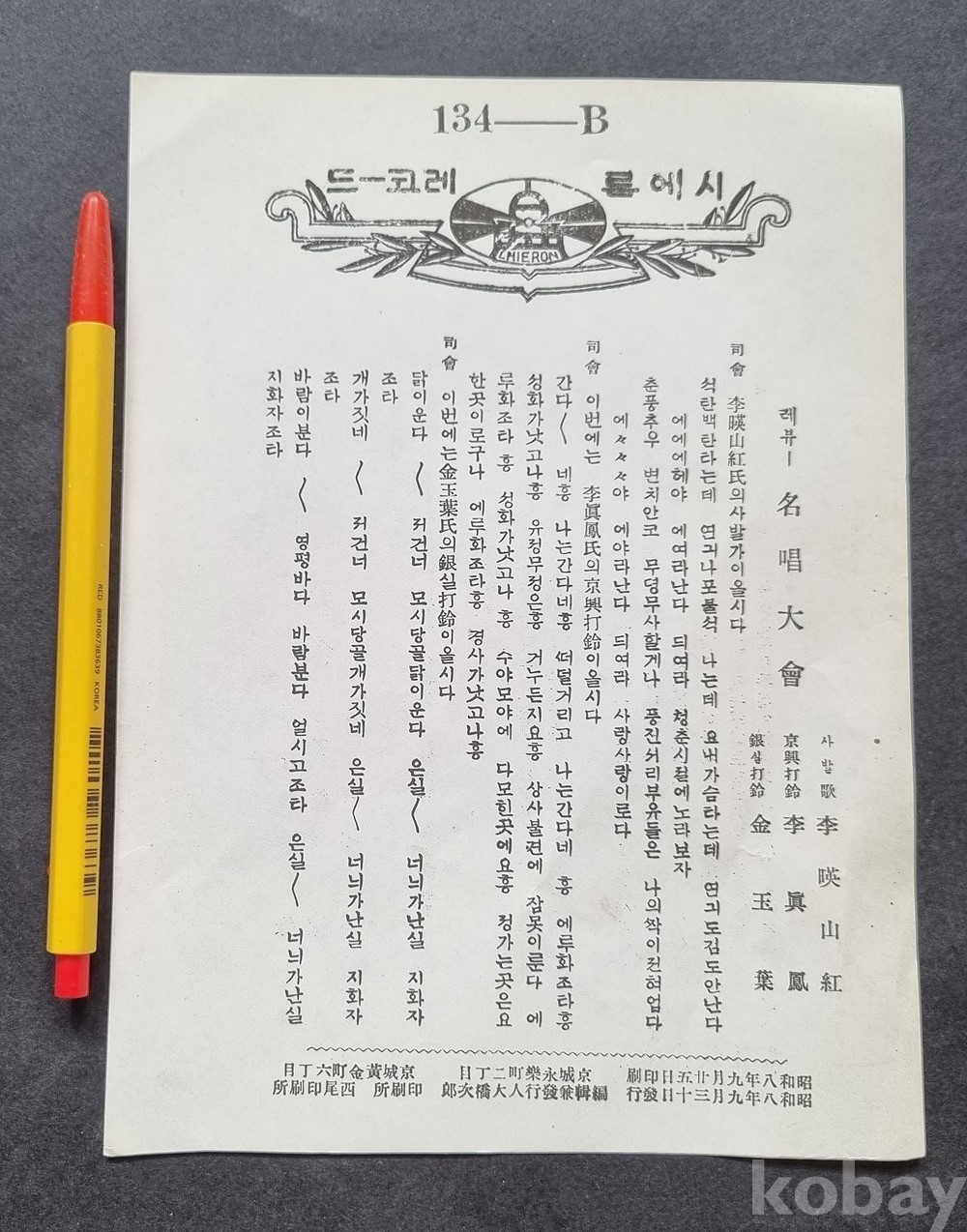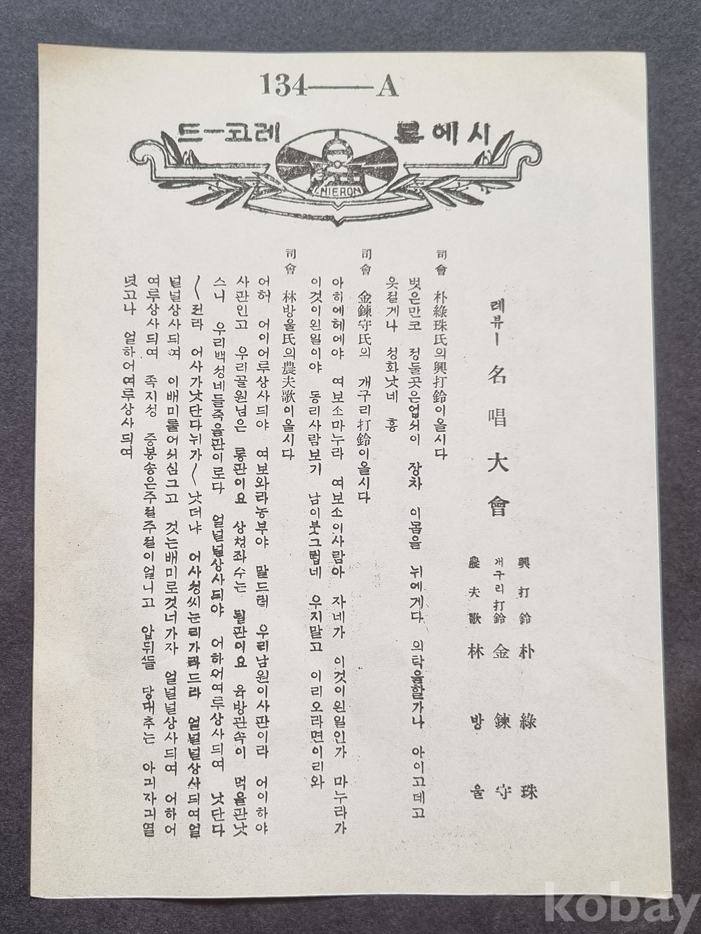 ro-32 / sp음반 (돌판) 가사지 (희귀) (원본복제품)