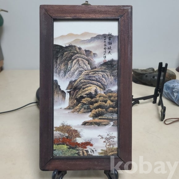 풍속화와 산수를 도자기 판에 그리고 사궤물림 방식으로 액자를 제작하였습니다