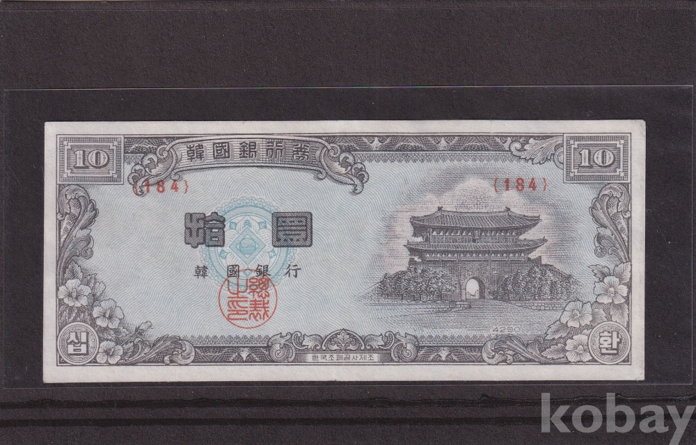 - 4290년(1957년) 남대문 신 십환 백색지 판번호 184번 극미 지폐