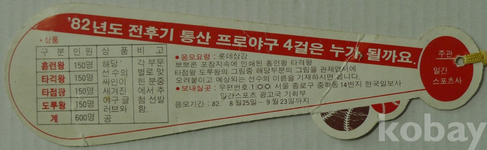 뒷면 '82 년도 전후기 통산 프로야구 4걸은 누가 될까요 응모 안내