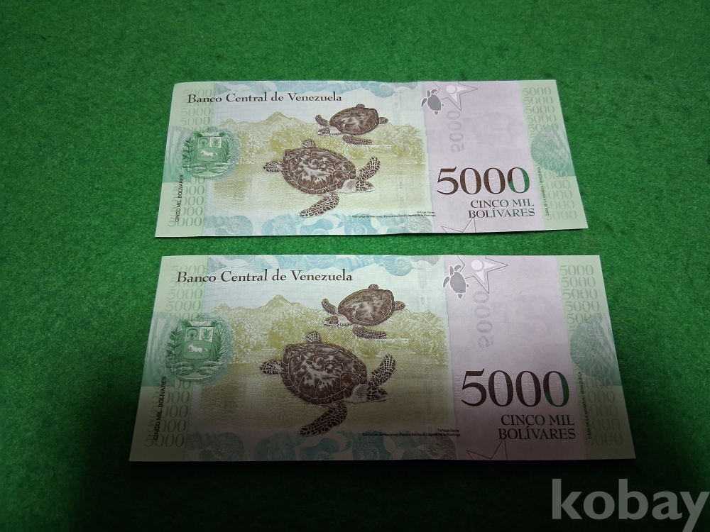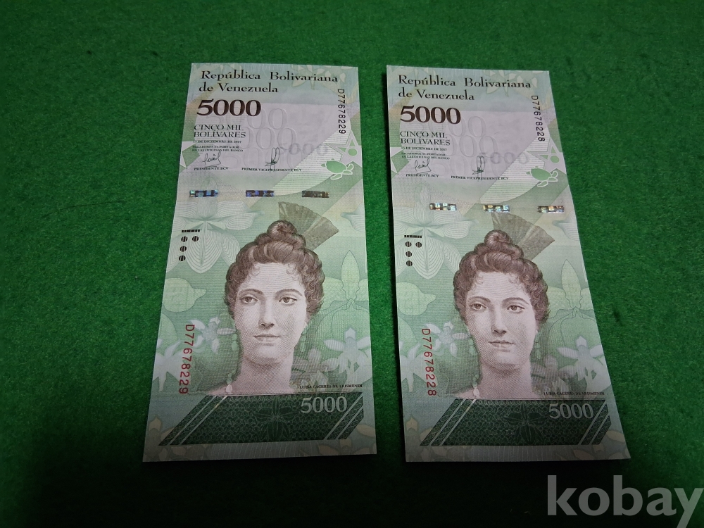 (외국지폐) 베네수엘라 연번호 지폐2매-미사용