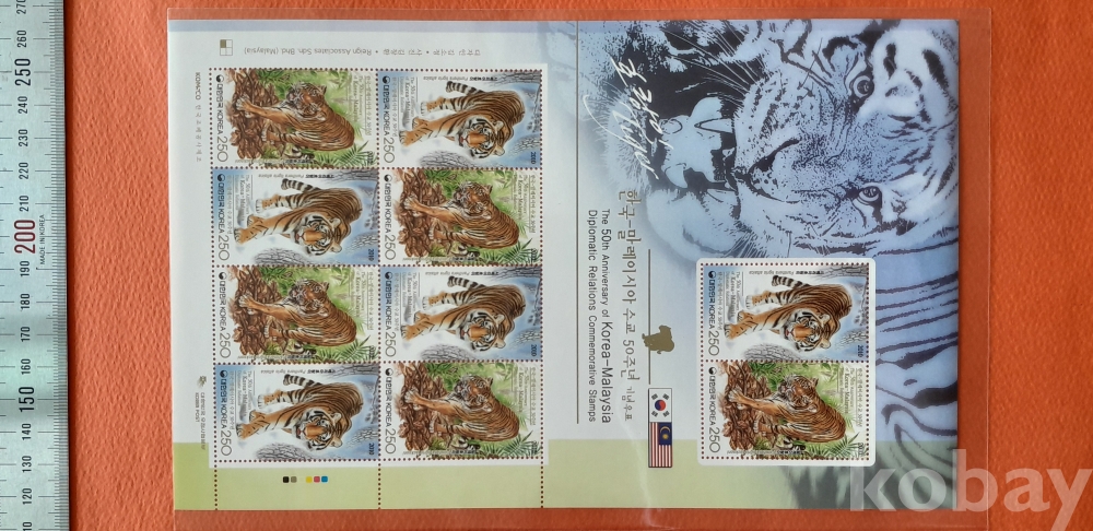 2010 한국 - 말레이시아 수교 50주년 기념 250원 10매 전지 입니다.