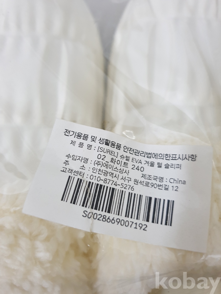 {천원경매} 11-2402 슈렐 EVA 흰색 겨울 털 슬리퍼(240)