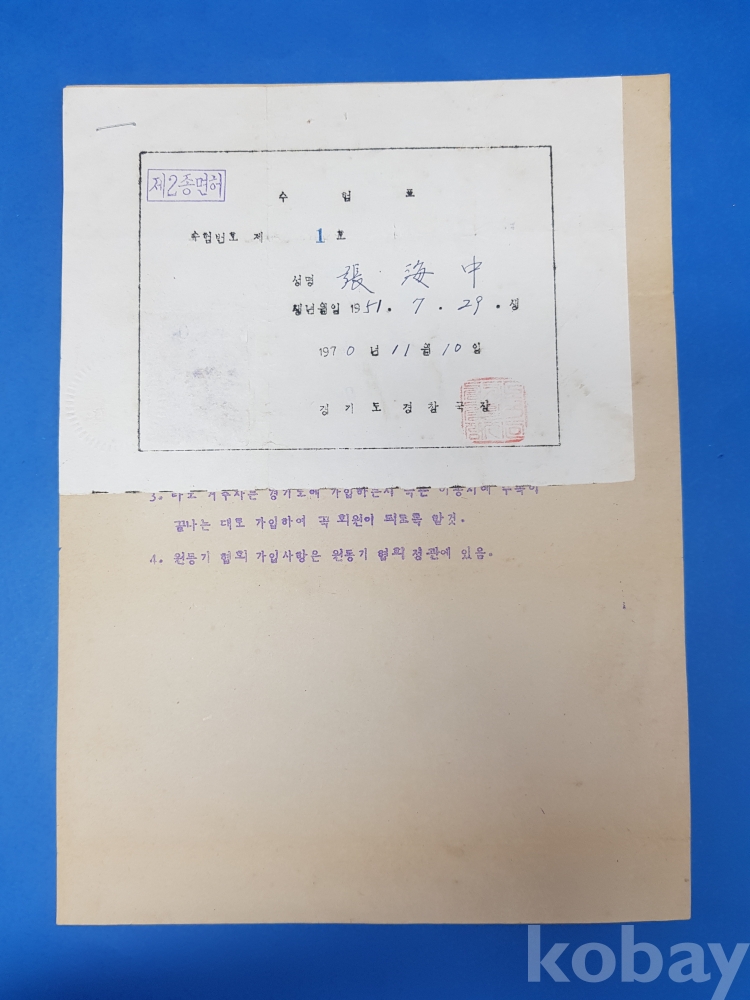 **** [경찰자료] 1970년 경기도경찰국 제2종면허 수험표
