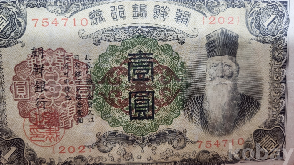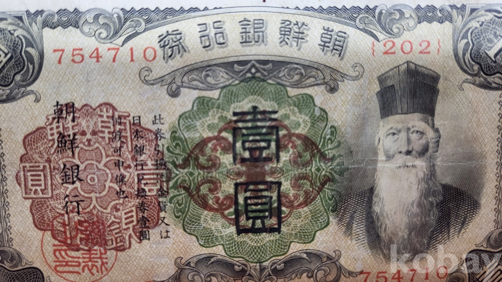 K ㅡ4책 10호 내4번 ////// 일제강점기 때 사용되었던 조선은행의 일원 지폐입니다,