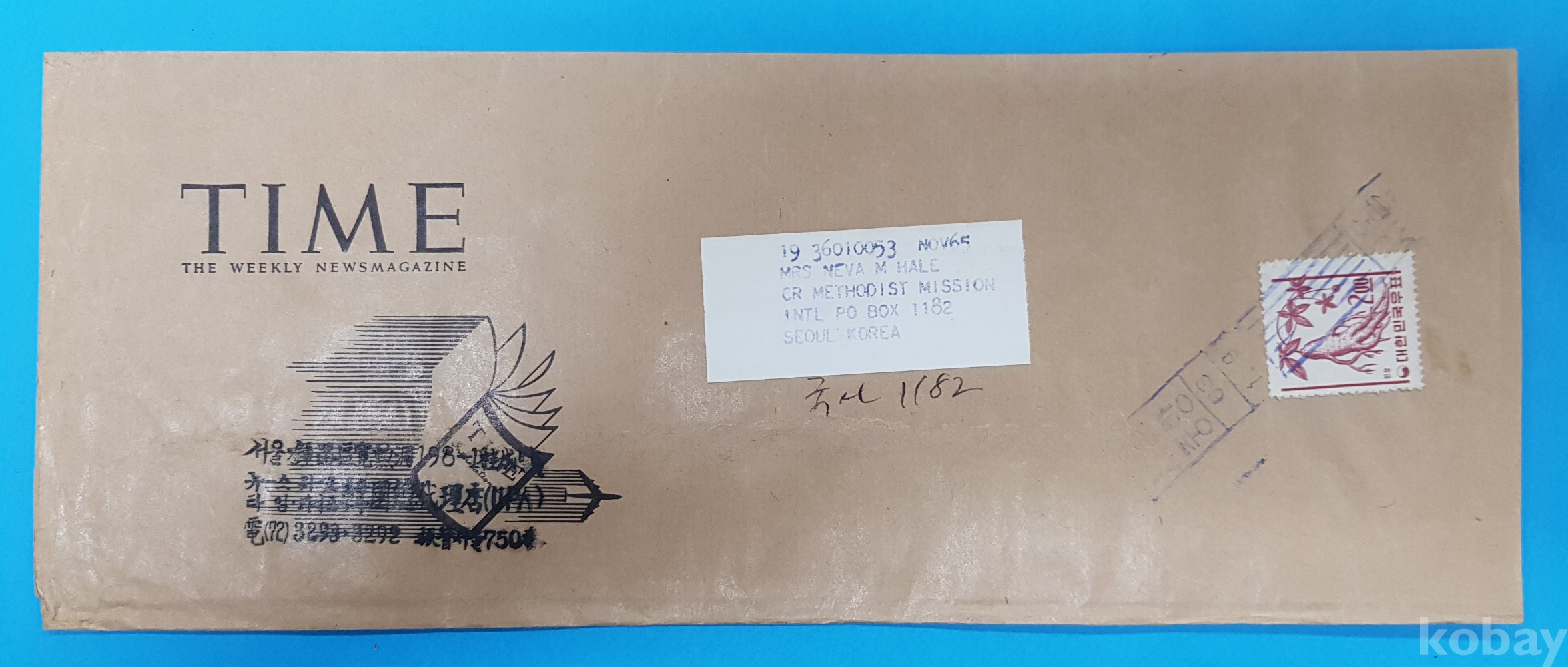 새원화우정부문보통 2원 인삼 단첩 인쇄물띠지 실체*서울중앙,63.1.9 로라인